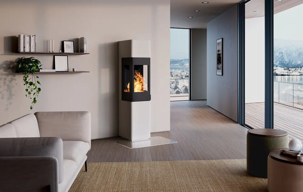 Entdecken Sie Nordpeis PortoDer Salzburg U ist ein wärmespeichernder Kamin, der für effiziente und langanhaltende Wärme sorgt. Die seitlichen Glasscheiben bieten einen guten Blick auf die Flammen aus mehreren Perspektiven. Und durch das schlichte und elegante Design fügt sich der Kamin harmonisch in jeden Wohnstil ein.