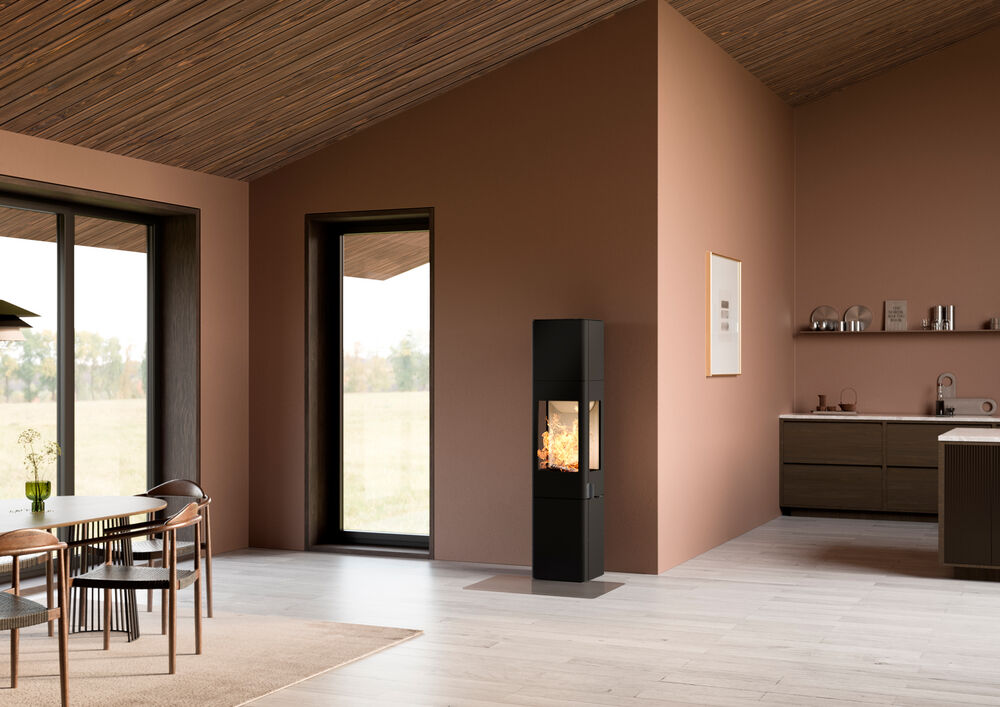 Suuret lasipinnat tarjoavat hyvän näkymän liekkeihin