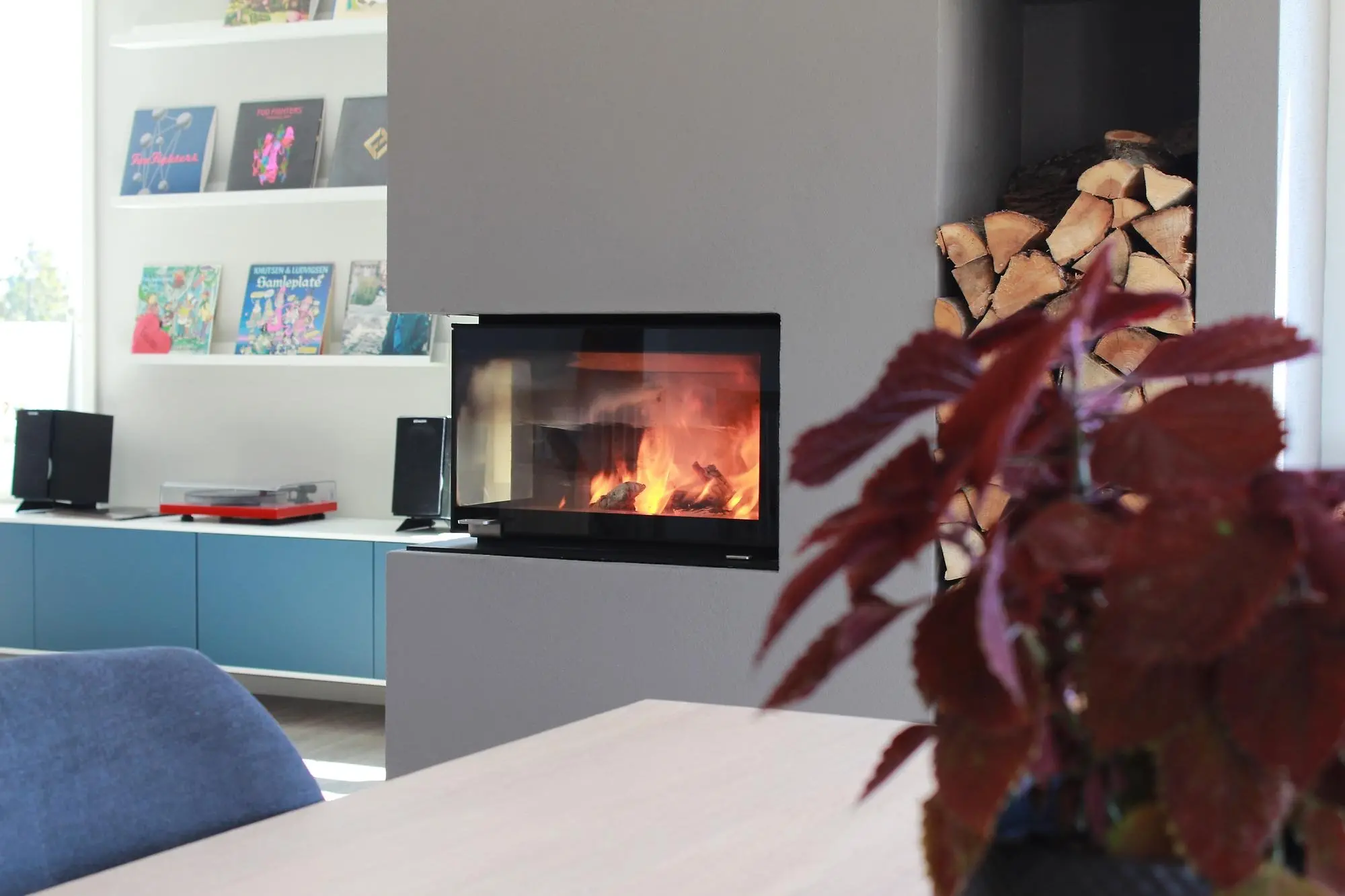 Chez l'architecte d'intérieur Kine Vinje, cela crépite autant à l’intérieur de sa cheminée qu’à l’extérieur grâce aux couleurs qu’elle a choisies pour celle-ci.