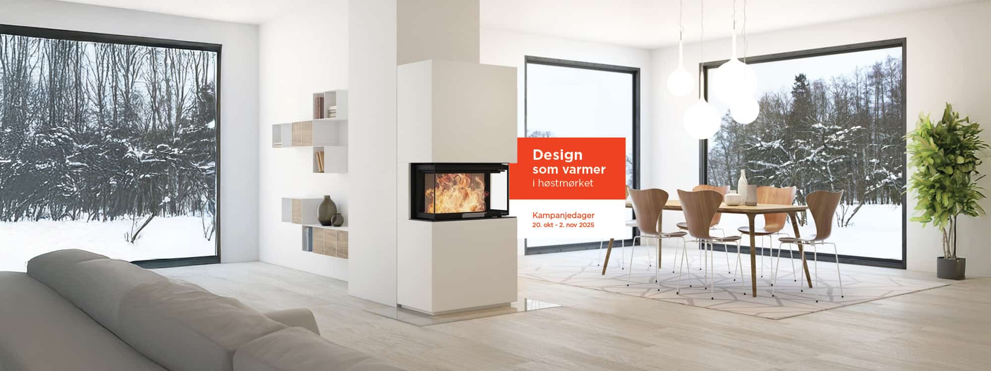 Vi gir deg design som varmer i høstmørket. Finn din favoritt blant våre peiser og vedovner på kampanje.