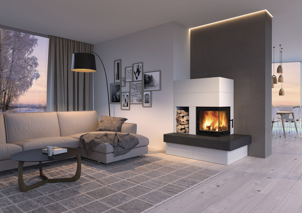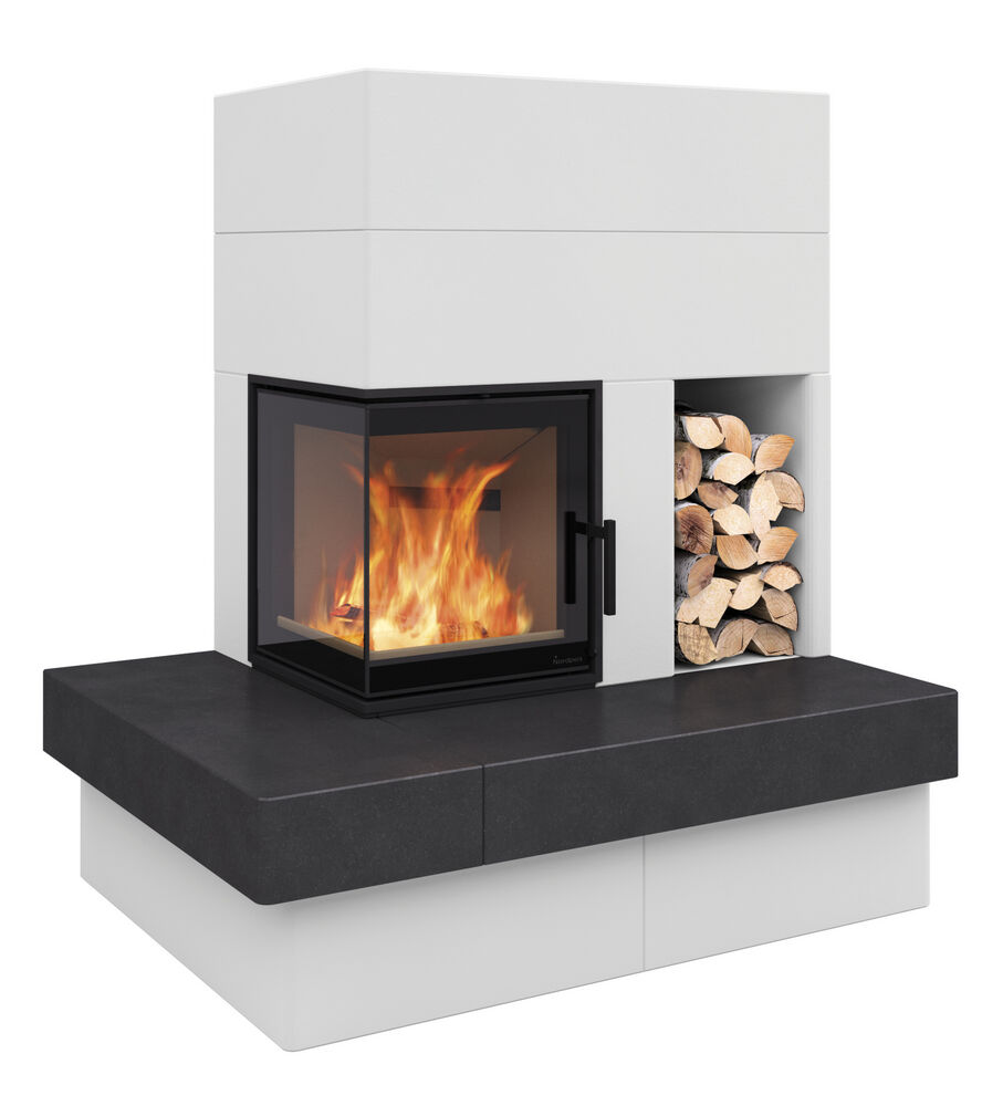 Nordpeis Denver er en klassisk hjørnepeis med integrert brannmur. Velg innsyn til flammene fra høyre eller venstre. Den store ilegghyllen gjør at du ikke behøver gulvplate.